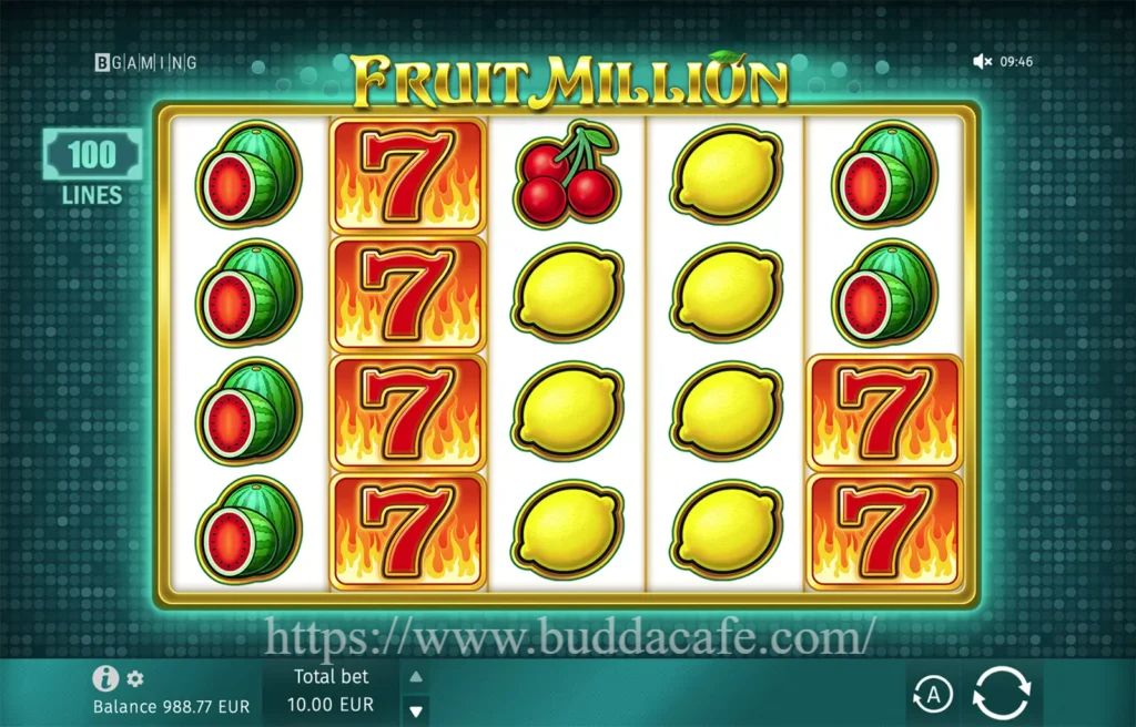 Fruit Million menggunakan format 5 gulungan dengan 100 paylines, cocok untuk pemula maupun pemain berpengalaman.
