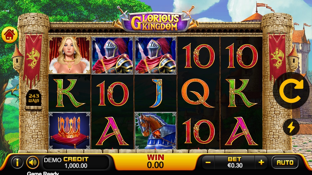 Glorious Kingdom membawa pemain masuk ke dunia kerajaan penuh kekuasaan dan kemegahan. Latar belakang game biasanya menampilkan istana marmer yang megah, pilar-pilar tinggi, dan langit senja yang dramatis. Namun, simbol-simbol dalam permainan mencerminkan kehidupan kerajaan, seperti raja, ratu, pedang emas, mahkota, perisai, serta lambang kerajaan.